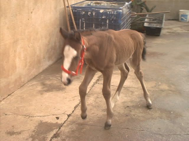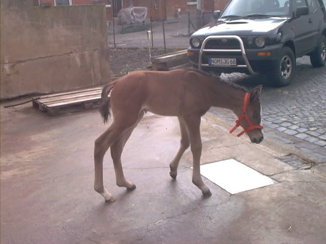 rein vom optischen ansehen insbes auf dem 2. foto würde ich gar nichts tun - habe erhebliche schärfere seitliche auskrümmung beider hinteren sprunggelenke in eine richtung (&#33 (das fohlen konnte gar nicht allein stehen weil die sprunggelenke beide zur selben seite wegbrachen) bereits gesehen u hätte keinen pfifferling darum gegeben - der züchter war die ruhe selbst u meinte das gibt sich von ganz allein wenn die nur jeden tag draussen sind... der mann hatte recht. das pferd ist heute ein riesenhaftes korrektes pferd.