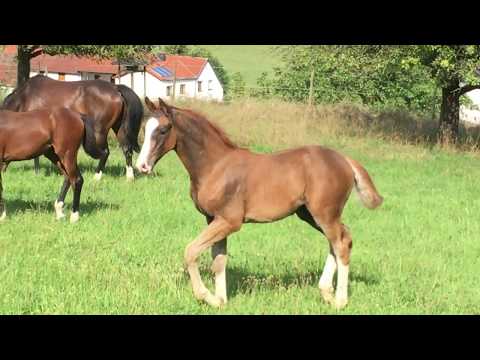 1. Stutfohlen aus einer Diarado/Quidam de Revel (Hol. Stamm 4847) , sehr korrekt, braun, Typvoll/hübsch wird ein Endmaß bekommen so um die 1,68m (Mutter 1,62) noch in meinem Besitz und bei mir im Stall.