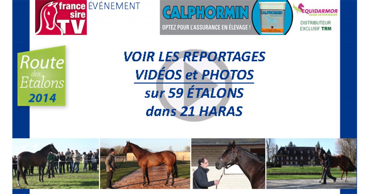 {Evénements} Pour sa 5e édition, France Sire TV suivra au plus prêt la Route des Etalons en vidéo grâce à ses 2 équipes qui visiteront près de 20 haras et 56 étalons dont vous trouvez par avance tous les détails ci-dessous. Les reportages sur les étalons avec les interviews des responsables seront publiés par haras sur France Sire à partir de samedi et dimanche soir, resteront toujours disponibles, puis individuellement pour chaque étalon concerné sur sa fiche de présentation. EN PARTENARIAT AVEC EQUIDARMOR